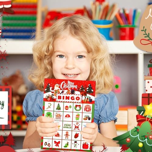Das Weihnachts-Bingo-Spielset besteht aus 32 hochwertigen Weihnachts-Bingokarten, 25 Bingo-Buchstabenkarten und 480 Markierungschips. Ideal für Spieler jeder Altersgruppe, bringt es fröhliche Stimmung in jede Weihnachtsfeier.