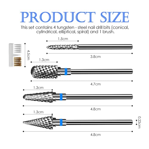 Investieren Sie in unser 4 Stück Nagelfräser Bits Kit und erleben Sie eine neue Dimension der Nagelpflege. Mit scharfen, hochwertigen Werkzeugen, vielseitigen Nutzungsmöglichkeiten und der Möglichkeit zur einfachen Reinigung, sind Sie bestens ausgestattet für jede Nagelpflege-Anwendung. Holen Sie sich jetzt die perfekte Unterstützung für Ihre Nail Art und Maniküre!