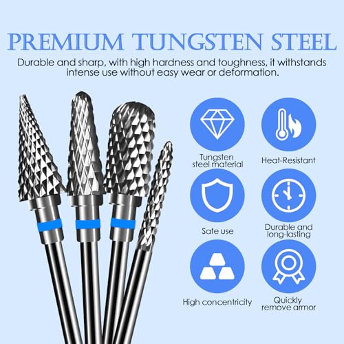 • Hochwertiges Wolframkarbid Material: Robuste und langlebige Nagelbohrer für effizientes Arbeiten an Acrylnägeln und Polygel.