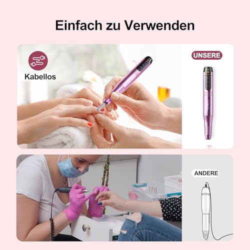 Lassen Sie sich von der Qualität und dem Komfort unseres kabellosen Nagelbohrers überzeugen und gestalten Sie Ihre Nagelpflege zu einem angenehmen Erlebnis!