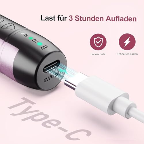 Erleben Sie die Freiheit der kabellosen Nutzung mit unserem wiederaufladbaren elektrischen Nagelbohrer. Dieser praktische Nagelbohrer überzeugt durch seine Mobilität: Mit einer einzigen Ladung können Sie über 3 Stunden lang arbeiten, ohne sich um störende Kabel Gedanken machen zu müssen. Sein stilvolles, kompaktes Design in Form eines Stiftes macht ihn ideal für unterwegs – einfach in Ihrer Handtasche verstauen und überallhin mitnehmen!