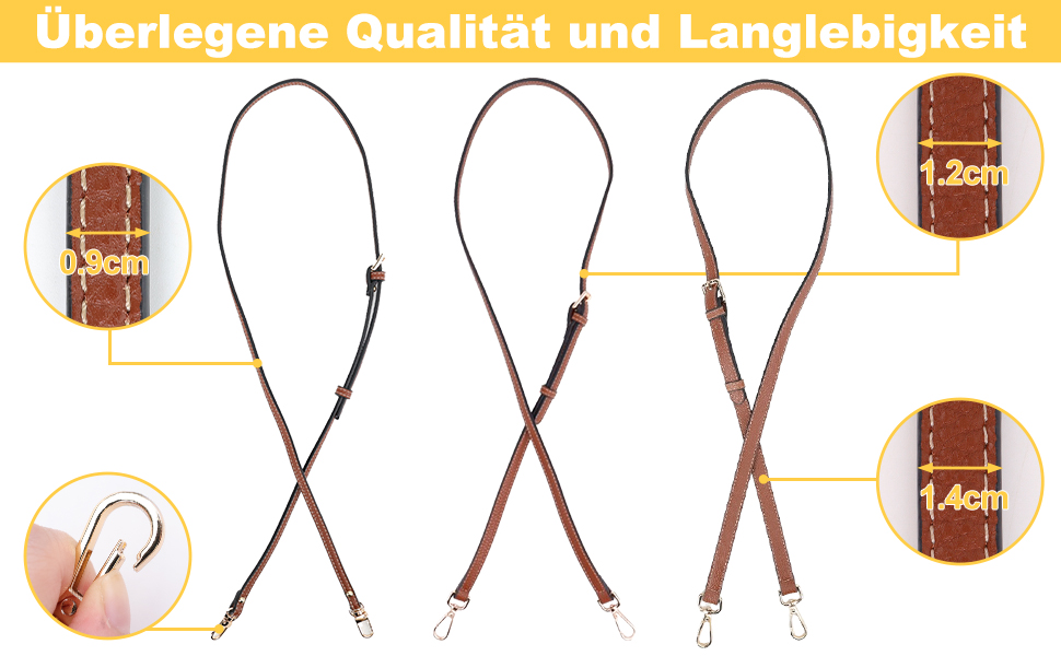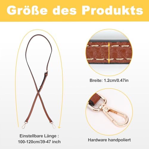 Der Schultergurt besticht durch ein modernes und elegantes Design in einem ansprechenden Gelb-Braun, das perfekt zu verschiedenen Handtaschen-Styles passt. Mit einer Breite von 0,9 cm (0.35 inches) und einer verstellbaren Länge von 100-120 cm (39-47 inches) lässt sich der Gurt mühelos an Ihre individuellen Bedürfnisse anpassen. Verwandeln Sie Ihre Handtasche in eine stilvolle Umhängetasche oder Crossbody-Tasche und genießen Sie die Flexibilität bei der Auswahl Ihres Trage-Stils.