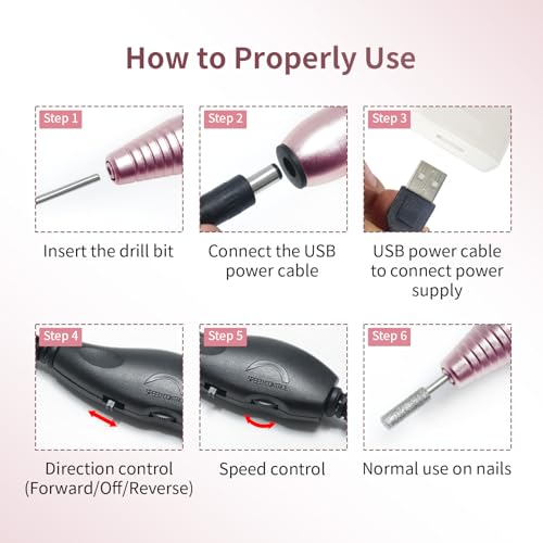Bewahren Sie den Nagelbohrer an einem trockenen Ort auf, wenn er nicht in Gebrauch ist, um die Lebensdauer des Geräts zu verlängern. Für spezifische Informationen zur Anwendung und Handhabung konsultieren Sie bitte das Handbuch oder kontaktieren Sie unseren Kundenservice.