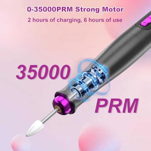 Das elektrische Maniküre-Set wird von einem wiederaufladbaren Akku betrieben und kommt mit einem Typ-C-Ladekabel, welches nur 2 Stunden Ladezeit benötigt und bis zu 6 Stunden Betrieb ermöglicht. Mit einem Gewicht von nur 98 g ist die Nagelbohrmaschine perfekt für unterwegs – ideal für den Salon, die Anwendung zu Hause oder für Reisen.