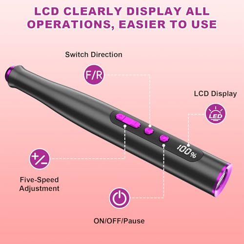 Der kabellose Nagelschneider bietet 5 einstellbare Geschwindigkeitsstufen von bis zu 35.000 U/min sowie eine Uhrzeiger- und Gegen-Uhrzeigefunktion. Das digitale Display zeigt sowohl die Geschwindigkeit als auch die Drehrichtung an – ideal für Rechts- und Linkshänder. So haben Sie immer die optimale Einstellung für Ihre Nagelbearbeitung im Blick.