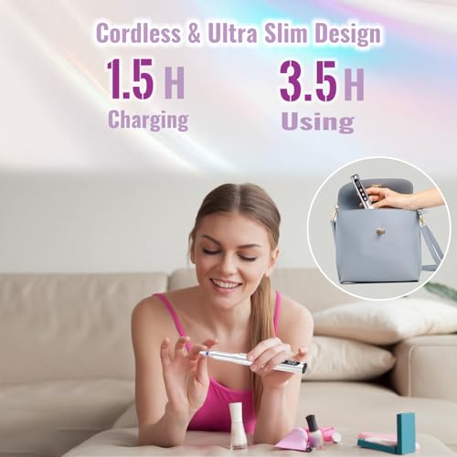 Mit einem leistungsstarken Motor, der Geschwindigkeiten von 10.000 bis 35.000 RPM ermöglicht, können Sie diese elektrische Nagelfeile mühelos und sicher an Ihre Bedürfnisse anpassen. Der große Steuerschalter zum Vorwärts- und Rückwärtsdrehen sorgt für eine problemlose Handhabung, egal ob für Links- oder Rechtshänder.