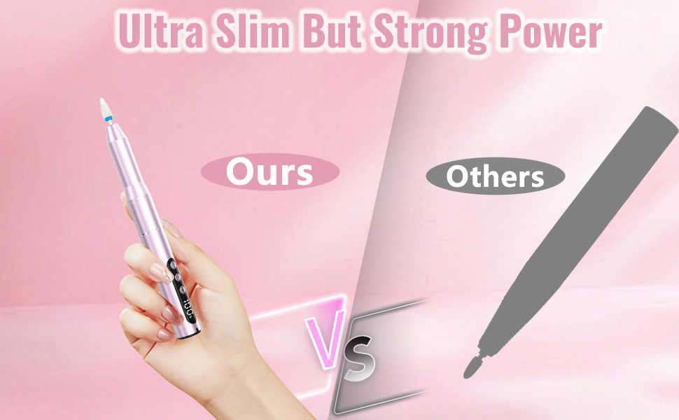 Der kabellose Nagelfräser im eleganten und ultraflachen Design (15 x 1,8 cm) aus Aluminiumlegierung begeistert durch seine Handlichkeit und Leichtigkeit. Mit nur 98 g lässt er sich problemlos transportieren und ist somit der perfekte Begleiter für Reisen oder den Einsatz unterwegs. Das rutschfeste und kratzfeste Gehäuse sorgt dafür, dass der Nagelbohrer angenehm in der Hand liegt und auch bei längeren Anwendungen nicht ermüdet.