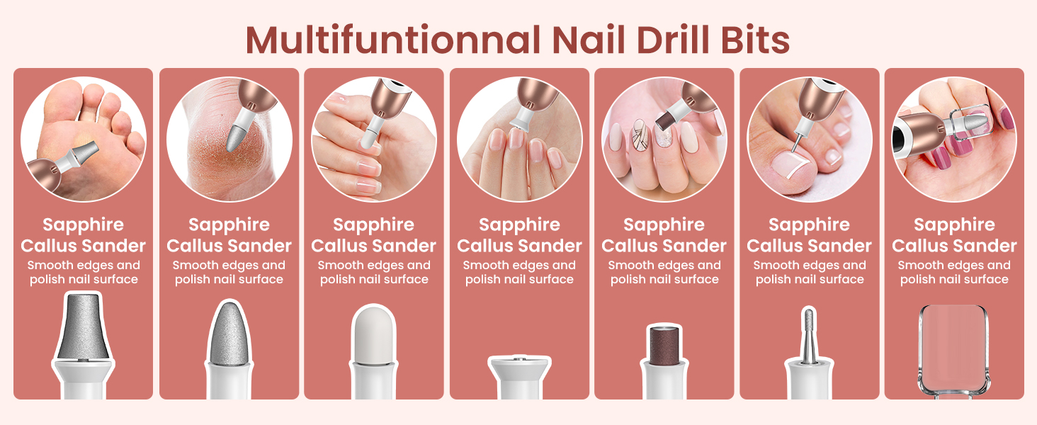 Erleben Sie die Freiheit, Ihre Maniküre und Pediküre überall durchzuführen! Unser wiederaufladbarer elektrischer Nagelfräser ist vollständig kabellos, sodass Sie keine lästigen Kabel umgehen müssen. Ideal für den Einsatz zu Hause oder unterwegs – genießen Sie die Flexibilität, jederzeit und überall schöne Nägel zu kreieren.