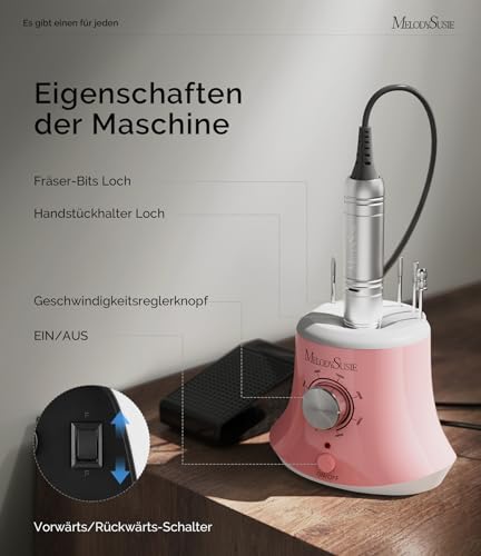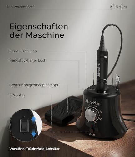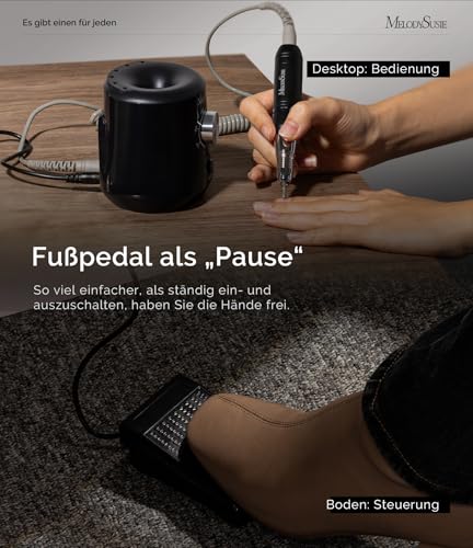 Die Nagelfräse arbeitet mit einem leisen, aber leistungsstarken kabelgebundenen Stromversorgungssystem, das eine hohe Leistung bietet, ohne dass lästige Batteriewechsel erforderlich sind. Dies sorgt für eine konstante Leistungsabgabe und eine beruhigende Anwendungserfahrung.