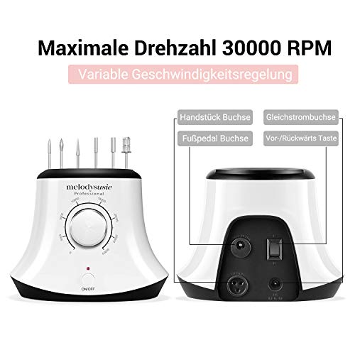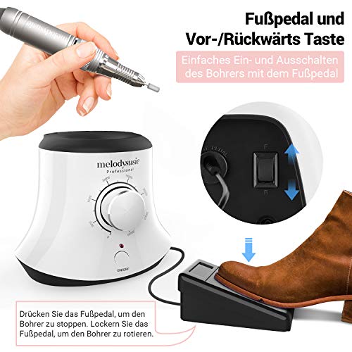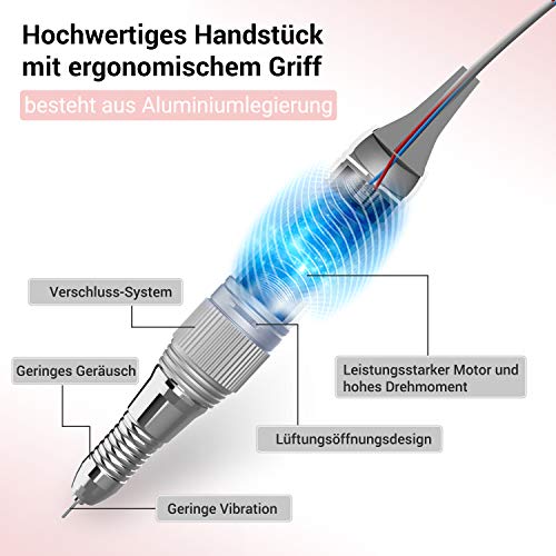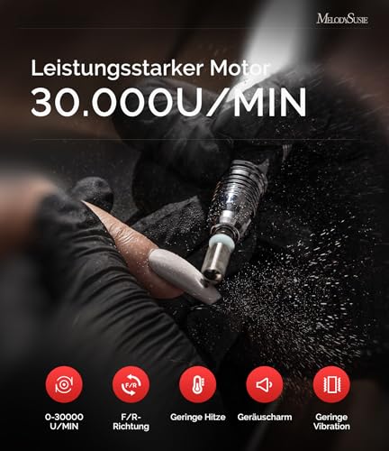 Die elektrische Nagelfräse bietet eine stufenlose Geschwindigkeitsregulierung von 0-30000 U/min, die es Ihnen ermöglicht, die Geschwindigkeit nach Ihren Wünschen und Bedürfnissen anzupassen. Diese Flexibilität sorgt dafür, dass sowohl Anfänger als auch Profis sicher und bequem arbeiten können.