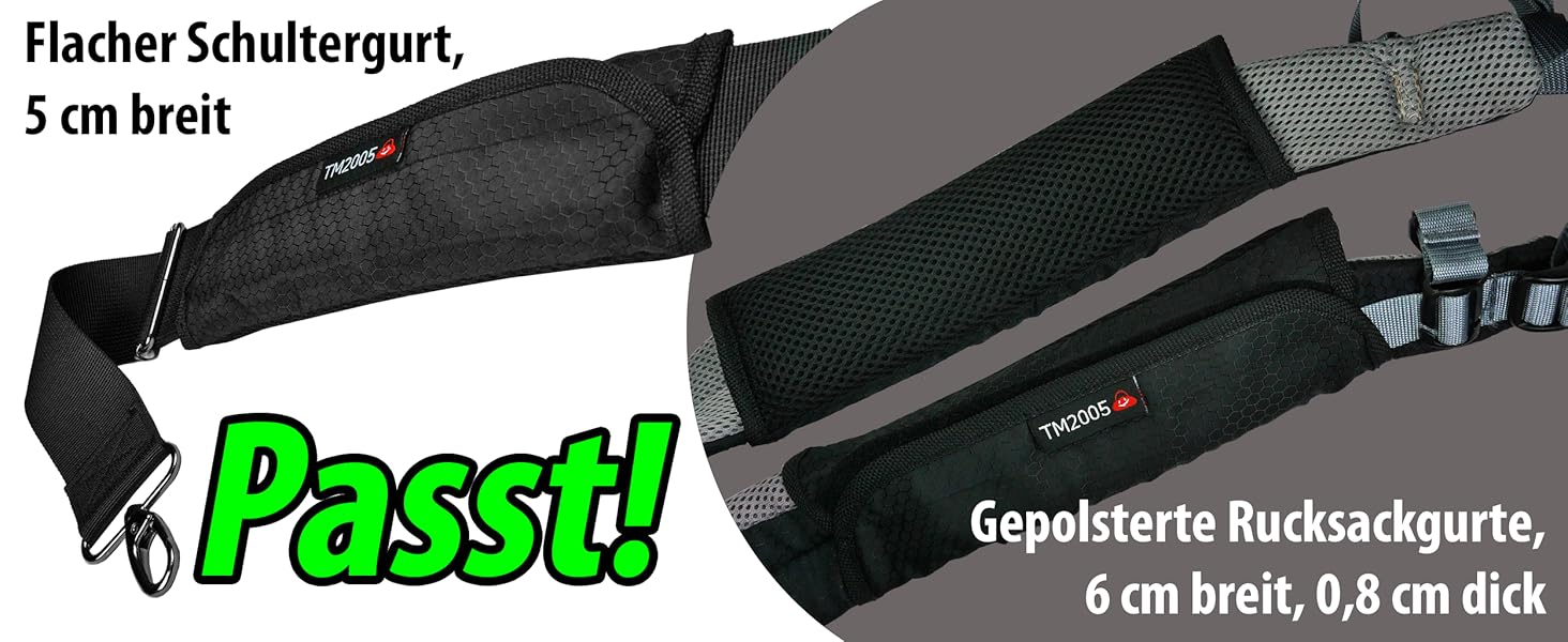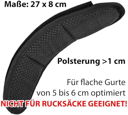 Die Maße von 22 x 6 cm machen die Polster ideal für Gurte mit einer Breite von 5-6 cm und einem Umfang von bis zu 13,5 cm. Ob dünnere Taschengurte oder dickere Rucksackgurte – unsere Schulterpolster passen sich flexibel an und bieten überall den gewünschten Komfort.