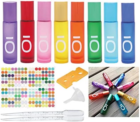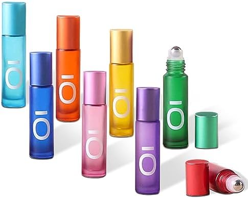 Ätherische Öle Roll On Glasflaschen von OI – 10ml nachfüllbare Aromatherapie Behälter für Zuhause und Reisen, 8 Stück Se