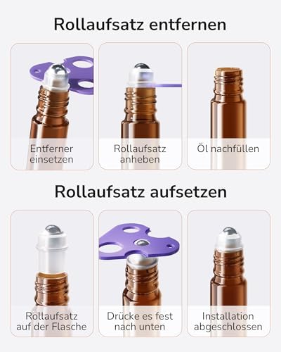 Die rostfreien Edelstahl-Roller sorgen für ein gleichmäßiges, präzises Auftragen—jedes Mal. Dieses durchdachte Design garantiert eine angenehme Anwendung, ganz gleich, ob Sie Ihre eigenen kosmetischen Kreationen oder deine Lieblingsdüfte verwenden.
