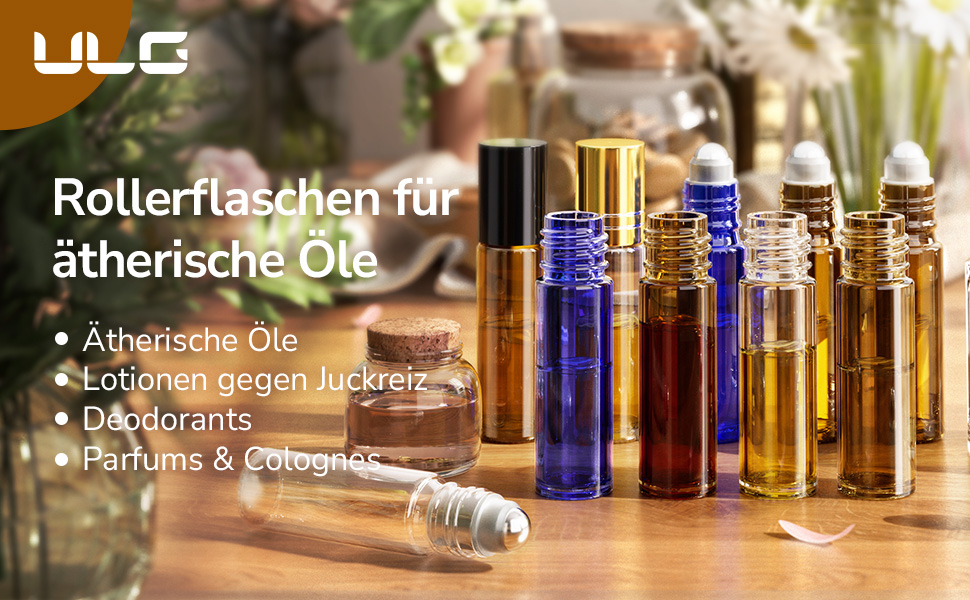 ULG 10ml Roll-On Glasfläschchen - Auslaufsicher & Ideal für DIY-Öle, Parfums, Lipgloss, 8er-Set im edlen BernsteinULG 10ml Roll-On Glasfläschchen – Auslaufsicher & Ideal für DIY-Öle, Parfums, Lipgloss, 8er-Set im edlen Bernstein