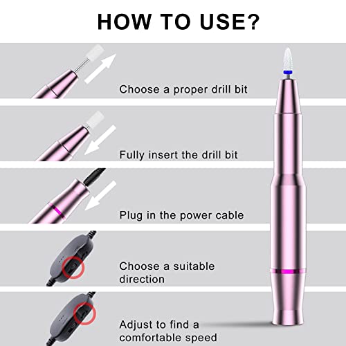 Die benutzerfreundliche Steuerung des Gerätes ermöglicht eine präzise Anpassung der Geschwindigkeit zwischen 0 und 25000 U/min. Der intuitiv gesteuerte Schieberegler wechselt mühelos zwischen den Modi „Vorwärts“, „Pause“ und „Rückwärts“, sodass Sie jederzeit die Kontrolle behalten. Mit einer verbesserten Lebensdauer von bis zu 500 Stunden ist dieser Nagelfräser außergewöhnlich langlebig, was ihn zu einer idealen Wahl für professionelle und private Anwendungen macht.